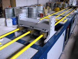 需要注意的是不同的拉擠產(chǎn)品其生產(chǎn)模具是不同的(模具基礎(chǔ)不變,需要更換的是活動(dòng)模具)。如玻璃鋼方管和玻璃鋼圓管的生產(chǎn)模具不同,而且孔徑、厚度等均需要調(diào)整模具。