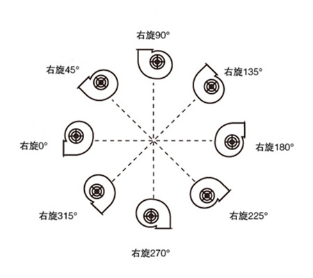 如風(fēng)機的出風(fēng)口在上面,其方向則為90°,根據(jù)玻璃鋼風(fēng)機葉輪旋轉(zhuǎn)方向來判斷是左旋還是右旋。一般玻璃鋼風(fēng)機在選型時,對于左旋和右旋的要求不是很多,一般只是具備一定的角度即可。建議如果無法判斷真確的方向,在選擇的時可以咨詢我們生產(chǎn)廠家。