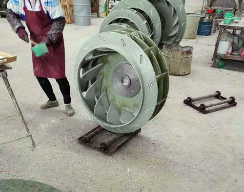 作為風(fēng)機(jī)的主要轉(zhuǎn)動(dòng)裝置,玻璃鋼風(fēng)機(jī)葉輪使用的原材料是乙烯基樹脂與玻纖氈。主要的制作工藝為手糊工藝,葉輪的蓋板、葉片都是單獨(dú)進(jìn)行制作之后再組裝起來的。