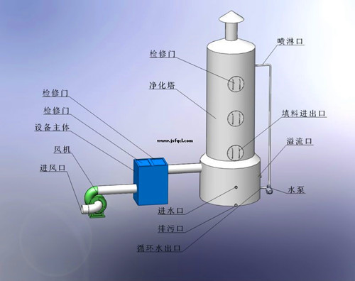 針對廢氣的主要成分,造紙廠的廢氣處理流程首先經(jīng)過玻璃鋼噴淋塔的水噴淋處理之后再經(jīng)過光陽催化塔進(jìn)一步處理之后由玻璃鋼材質(zhì)的離心式風(fēng)機(jī)經(jīng)管道排放。